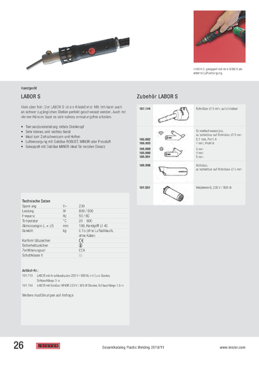 Labor S Palsur / Adobe Stock T. Michel / Adobe Stock filborg / Adobe Stock davooda / Adobe Stock Gesamtkatalog KunststoffschweißenApparate- und BehälterbauZubehör für Heissluftgebläse Technische DatenProspekt im PDF-FormatBedienungsanleitungZubehör und SonderteileMaße und ZeichungenFotos und Videos