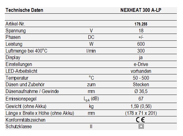 NEXHEAT 300 A-LP ohne Akku Palsur / Adobe Stock T. Michel / Adobe Stock filborg / Adobe Stock davooda / Adobe Stock NEXHEAT 300 A-LP - technische DatenNEXHEAT 300 A LP - FlyerNEXHEAT 300 A LP - Akku-EmpfehlungNEXHEAT 300 A-LP - BedienungsanleitungNEXHEAT 300 A-LP - ZubehörNEXHEAT 300 A-LP ohne Akku - Maße und ZeichnungTechnische DatenProspekt im PDF-FormatBedienungsanleitungZubehör und SonderteileMaße und ZeichungenFotos und Videos